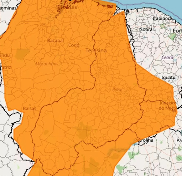O Instituto Nacional de Meteorologia (Inmet) emitiu, nesta segunda-feira (19), um alerta laranja para 222 municípios do Piauí com perigo de chuva entre 30 e 60 mm/h e ventos intensos de até 100 km/h. Os temporais previstos para os próximos três dias são devido à Zona de Convergência Intertropical (ZCIT) e a convergência de umidade em baixos níveis.
