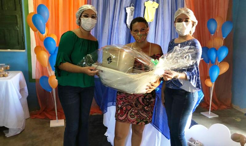 Durante a entrega, também foram desenvolvidas dinâmicas, roda de conversa com as futuras mães sobre os cuidados necessários e o desenvolvimento da criança através dos estímulos necessários.