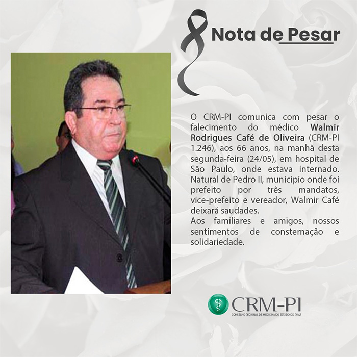 O médico e ex-prefeito Walmir Café faleceu na manhã desta segunda-feira (24) em São Paulo aos 66 anos. Ele estava em tratamento da Covid-19. Na vida política, ele foi vereador (presidente da Câmara Municipal), vice-prefeito e se elegeu por três vezes prefeito de sua cidade, Pedro II.