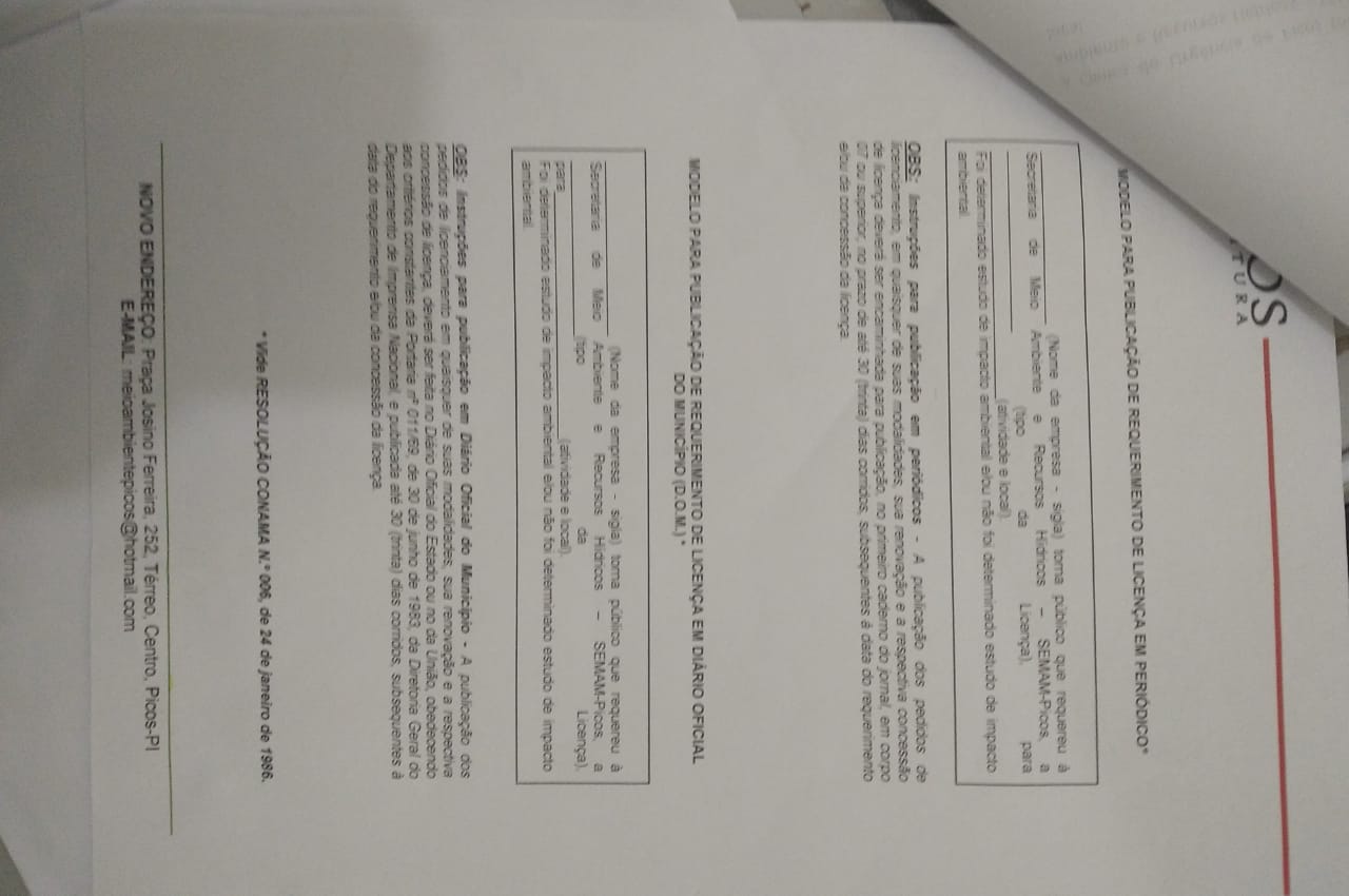 O requerimento de licença está publicado e disponível no Diário Oficial do Município de Picos desde a segunda-feira, dia 28 de junho.