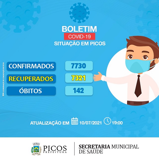 Até agora 7.730 pessoas testaram positivo para COVID no município picoense, sendo que 7.321 já se recuperaram da doença.