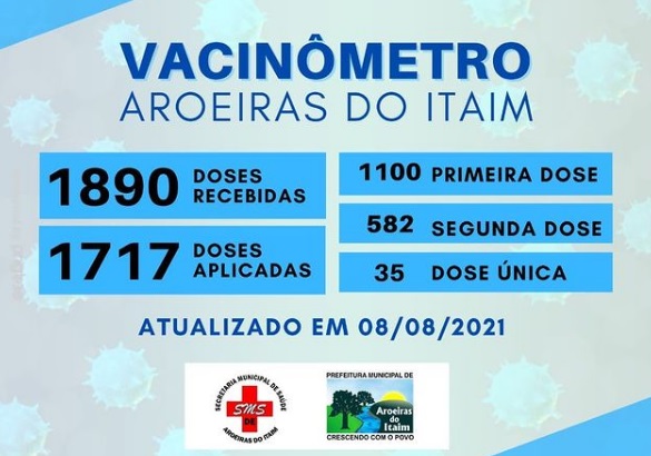 Os números do Vacinômetro divulgado pela SMS, na noite deste domingo (08), apontou que o município aroeirense recebeu até agora da SESAPI (Secretaria de Estado da Saúde do Piauí) 1.890 doses das vacinas contra a COVID-19.