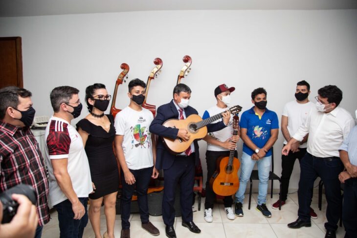 O governador Wellington Dias participou, nessa quinta- feira (26), da inauguração da nova sede da Escola de Música Dona Gal, no bairro São Joaquim, zona norte de Teresina. O espaço foi totalmente reformado para receber os mais de 700 alunos que têm a oportunidade de aprender a tocar diversos instrumentos dentre eles violino, viola, violoncelo, contrabaixo, trompete, clarinete, sax, trombone, tuba, trompa,bateria, sanfona, teclado e percussão, além de canto, canto coral infantil e ainda capoeira e balé. A reforma foi financiada por meio do Sistema de Incentivo Estadual à Cultura (Siec), da Secretaria Estadual de Cultura (Secult), com o patrocínio da Equatorial Piauí. O prédio foi cedido pela Prefeitura de Teresina.
