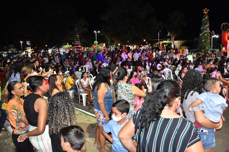 A inauguração da decoração de Natal da Praça Clementino Martins, no Centro, em frente à Prefeitura, na noite desta sexta-feira (26), reuniu uma multidão que transparecia no olhar o encantamento proporcionado pelo espetáculo de cores e luzes.