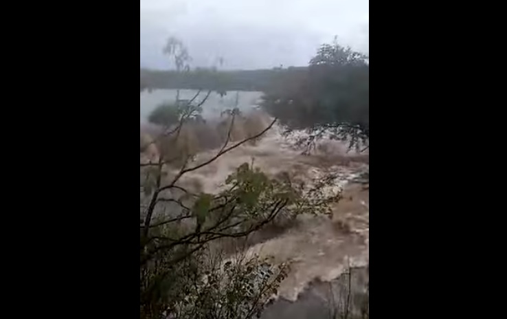 No vídeo abaixo é possível presenciar a forte correnteza após o rompimento de parte da parede de contenção no sangradouro – local denominado para vazão quando o reservatório atinge a capacidade máxima de armazenamento de água.