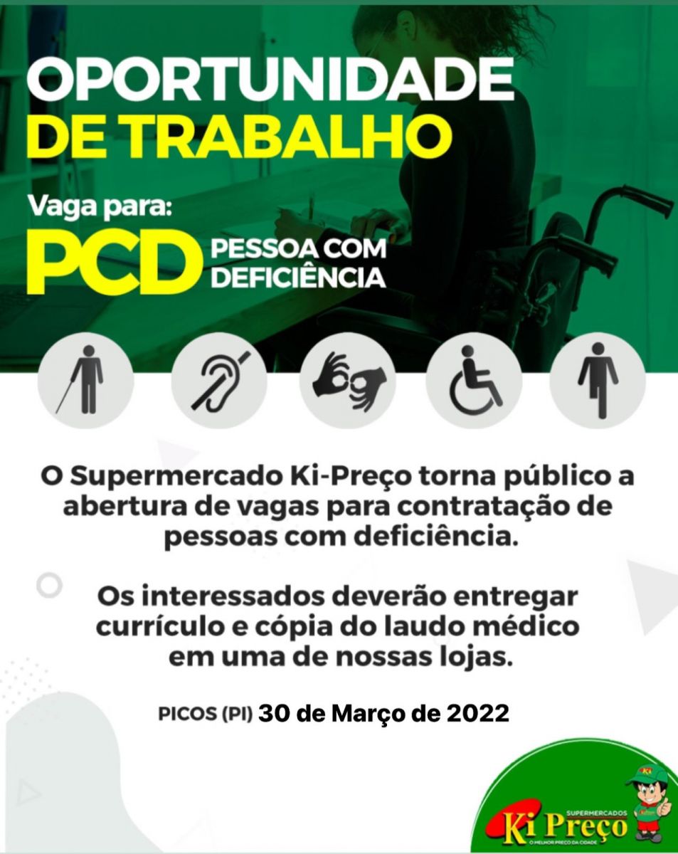 Os Supermercados Ki Preço de Picos está oferecendo oportunidades de trabalho a pessoas com deficiências.
