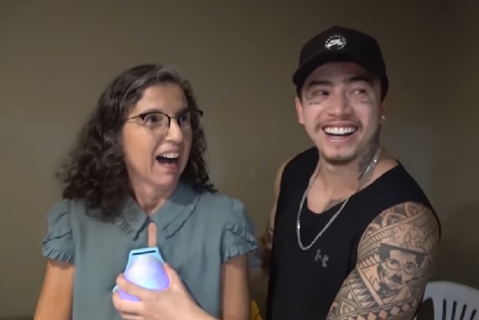 “Eu tenho muito medo de ficar completamente surda e não conseguir ouvir mais música”, admitiu. “Escuta perfeito (sic)!”, comemorou na sequência, quando Whindersson posicionou a caixa nas costas dela.