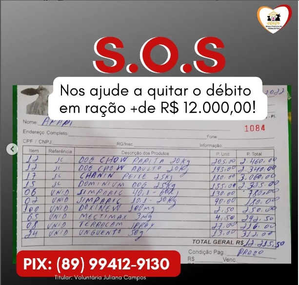 A Associação Amigos Protetores dos Animais de Picos (APAPI) divulgou nos últimos dias o montante de dívidas que possui, devido aos gastos com tratamentos e alimentação dos animais resgatados das ruas e apadrinhados pelos protetores.
