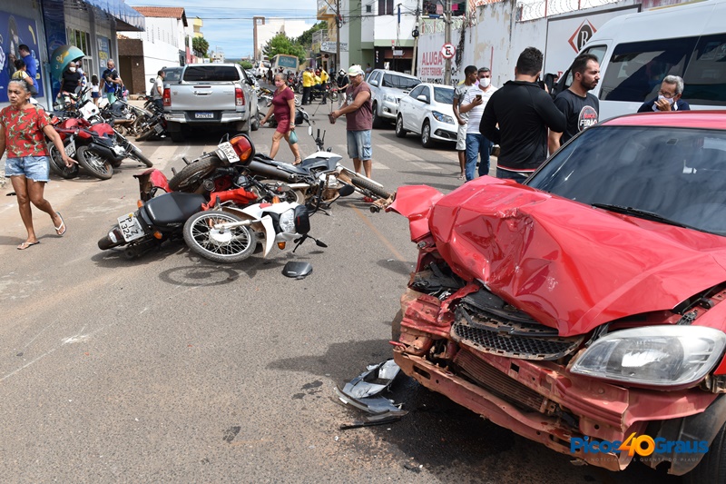 Por volta das 09h45 desta sexta-feira, 17 de junho, um acidente registrado na Rua Marcos Parente, Centro de Picos, chamou atenção pela quantidade de veículos envolvidos, 19 ao todo.
