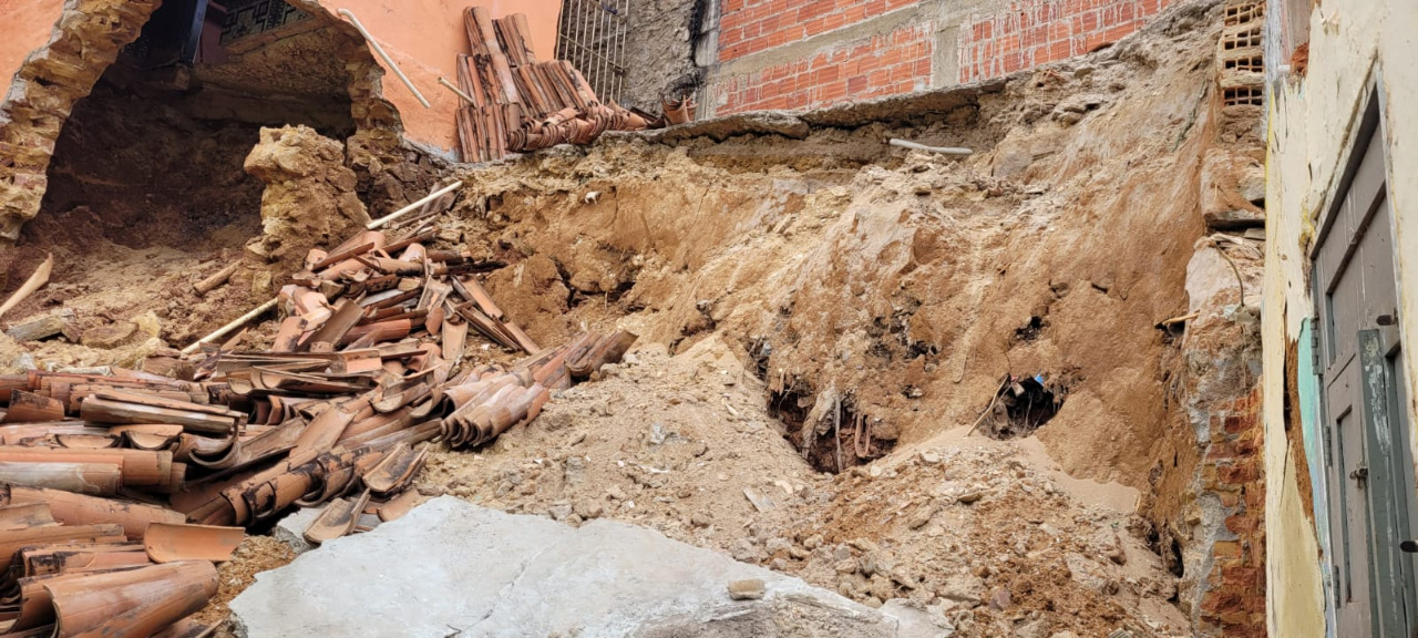 O entulhou destruiu o telhado da casa atingida. A casa que cedeu pode estar comprometida. Técnicos da Defesa Civil do município têm analisado os dois imóveis e os vizinhos para verificar se há risco de mais desabamentos.