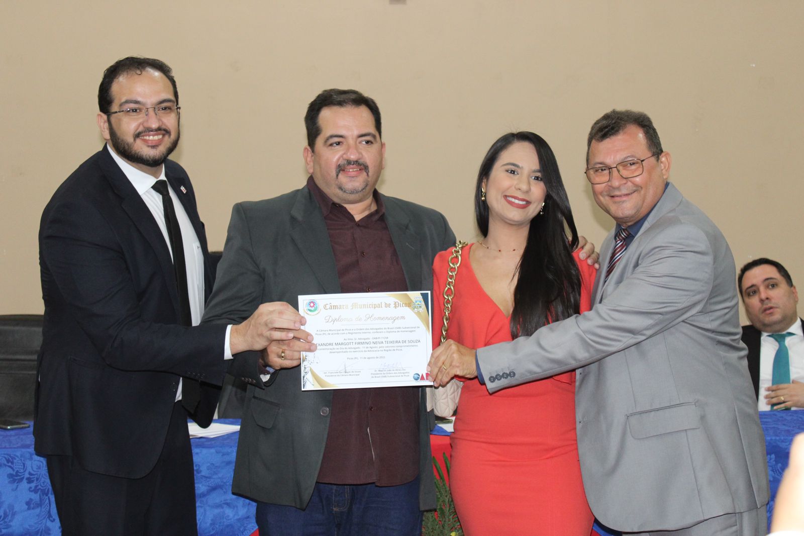 Na oportunidade, a Câmara em conjunto com a Ordem dos Advogados do Brasil (OAB), subsecção de Picos, homenageou cerca de 40 advogados, com a entrega de diplomas legislativos, em reconhecimento aos relevantes serviços prestados à população.