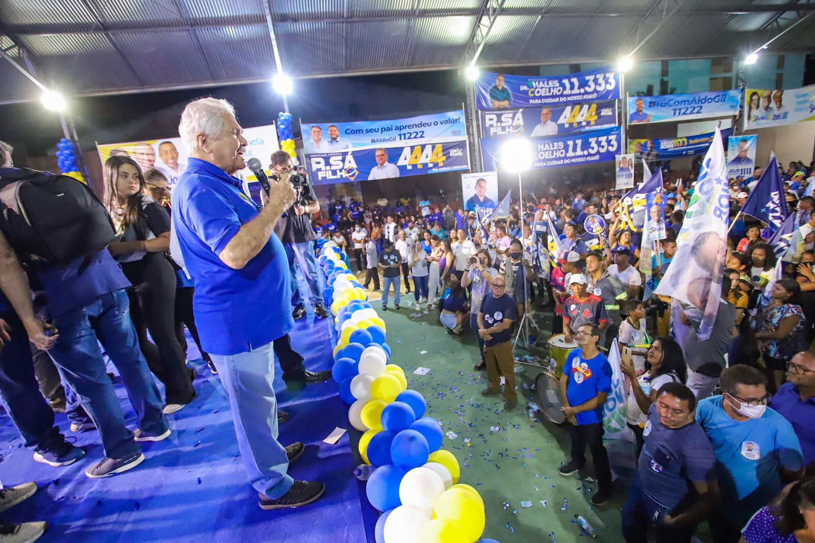 O senador Elmano Férrer (Progressistas) demonstrou a força de sua candidatura a deputado federal, nesta sexta (19), em Picos, durante um ato de campanha da frente de oposição “Vamos Mudar o Piauí”. O evento, realizado no Picoense Clube, contou com a presença do ministro Ciro Nogueira, do prefeito Gil Paraibano e dos candidatos da oposição Sílvio Mendes (governador), Iracema Portella (vice), Joel Rodrigues (senador) e Aldo Gil (deputado estadual). Na ocasião, Elmano Férrer circulou no meio das pessoas e foi abraçado pelos picoenses.