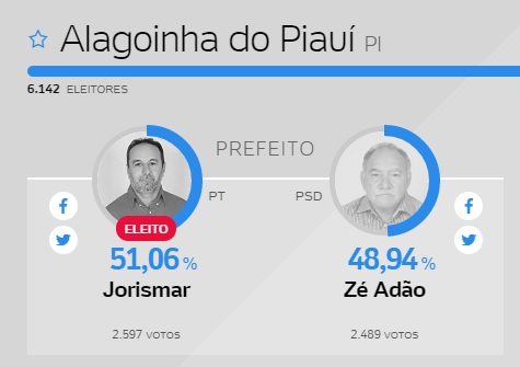 Em segundo lugar ficou o candidato governista Zé Adão (PSD) que obteve 48,94% dos votos e tinha como vice, o vereador Janílson Neto (PP).