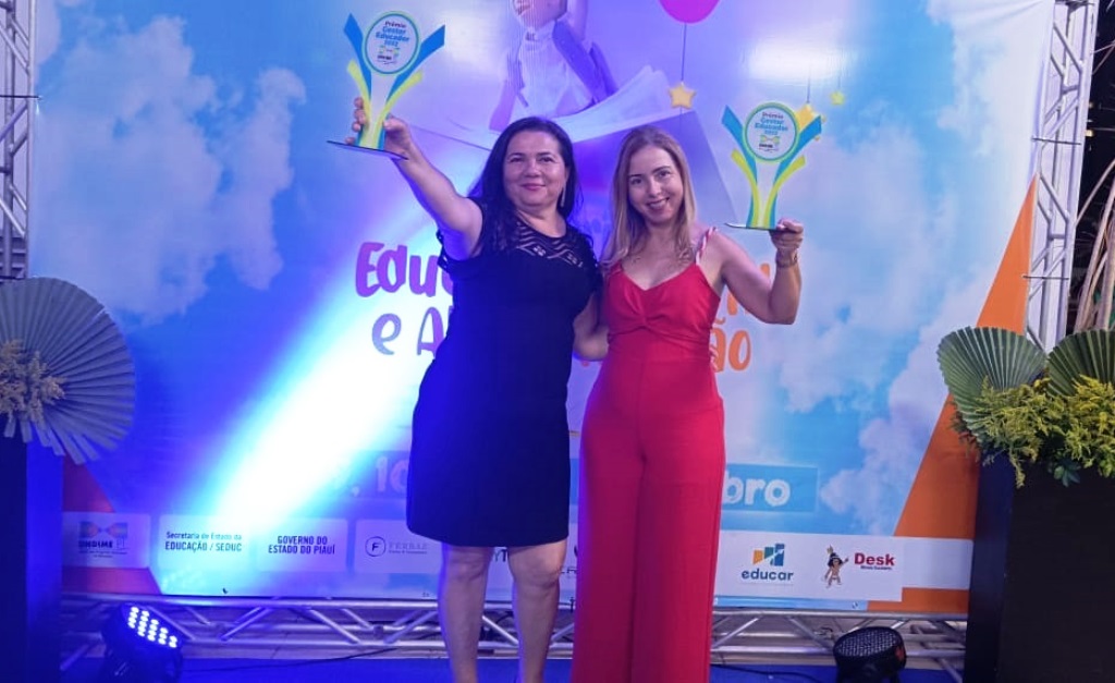A supervisora de ensino, Elisete Antônia da Rocha Luz e a assessora do Gabinete da Secretaria Municipal de Educação, Gislene Teresa Veloso Rocha, receberam a premiação na última quarta-feira, 09, em Teresina, representando, na oportunidade, o prefeito de Sussuapara, Naerton Moura e a secretária de Educação, Jesuíta Araújo Rocha.