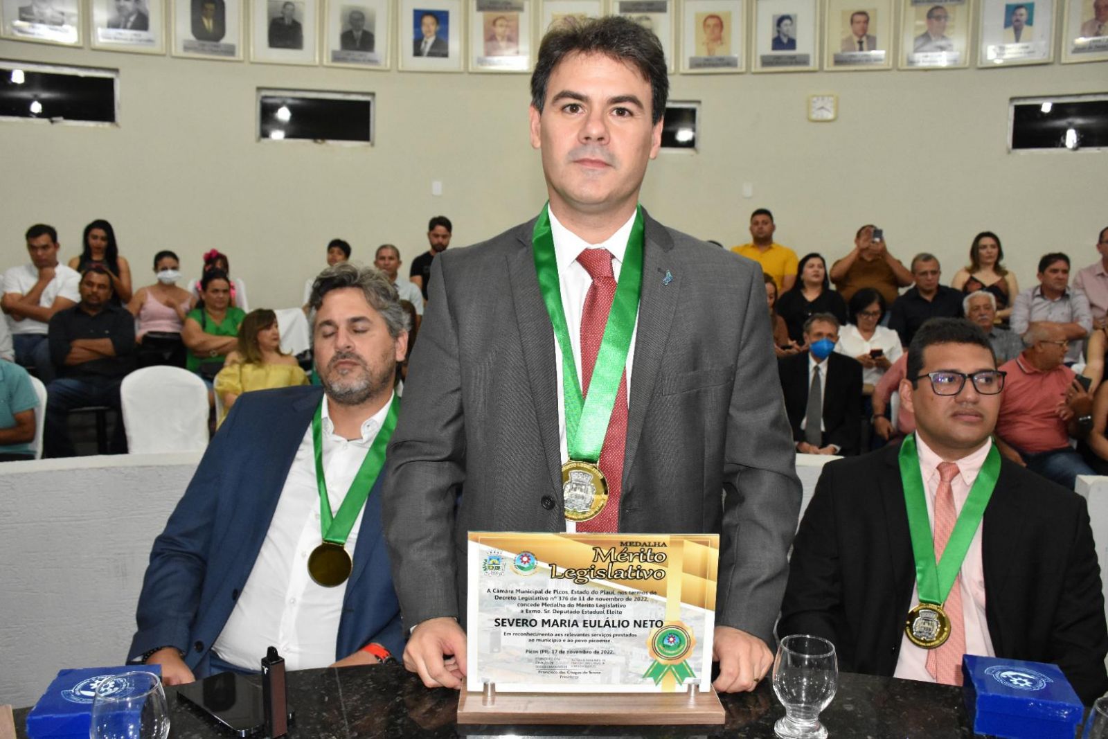 “Tivemos a iniciativa de homenagear todos os deputados estaduais, federais, senador e governador eleitos por Picos, onde tivemos uma boa votação para o senador Wellington Dias, uma votação expressiva para o governador eleito Rafael Fonteles, tivemos uma boa votação para todos os deputados estaduais e federais. Picos hoje tem uma bancada com seis deputados estaduais, então discutindo com os vereadores resolvermos fazer um projeto para homenagear todos eles com a Medalha do Mérito Legislativo, e, a partir dessa medalha, a gente possa fazer um chamamento para que eles possam ouvir as reivindicações da população picoense, e que a partir de janeiro possam trabalhar em prol do desenvolvimento do nosso município”, disse Chaguinha.