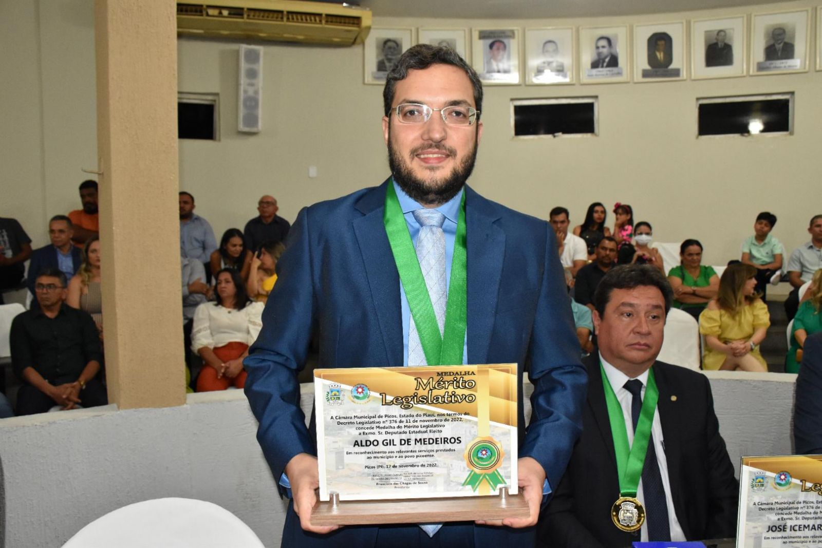 O deputado estadual eleito, Aldo Gil de Medeiros, falou em nome dos deputados estaduais eleitos e comentou sobre a honraria e destacou que é importante a união dos parlamentares em prol do desenvolvimento de Picos e do Piauí.