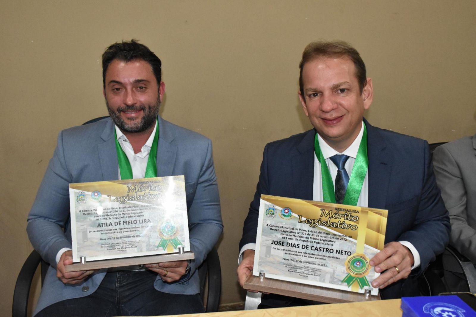 Receberam a medalha mérito legislativo os deputados federais eleitos Àtila Filho (PP) e Castro Neto (MDB), além dos deputados estaduais eleitos Severo Eulálio (MDB); Aldo Gil de Medeiros (PP); Pablo Santos (MDB); Carlos Augusto (MDB) e Nerinho (PT).