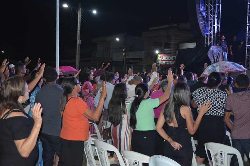 Realizado em praça pública, o evento teve início às 19h30 e contou com público expressivo que se emocionou que as apresentações de louvores entoados por cantoras e cantores e um coral.