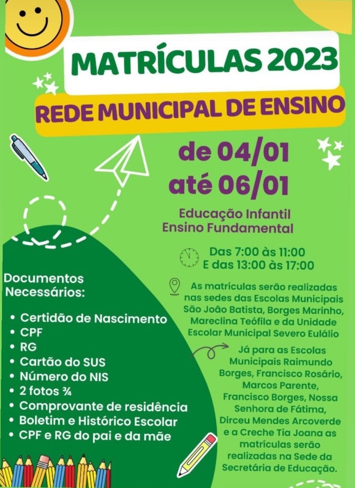 A prefeitura de São José do Piauí, através da Secretaria de Educação, iniciou o período de matrículas escolares para o ano letivo de 2023, na rede municipal de ensino.