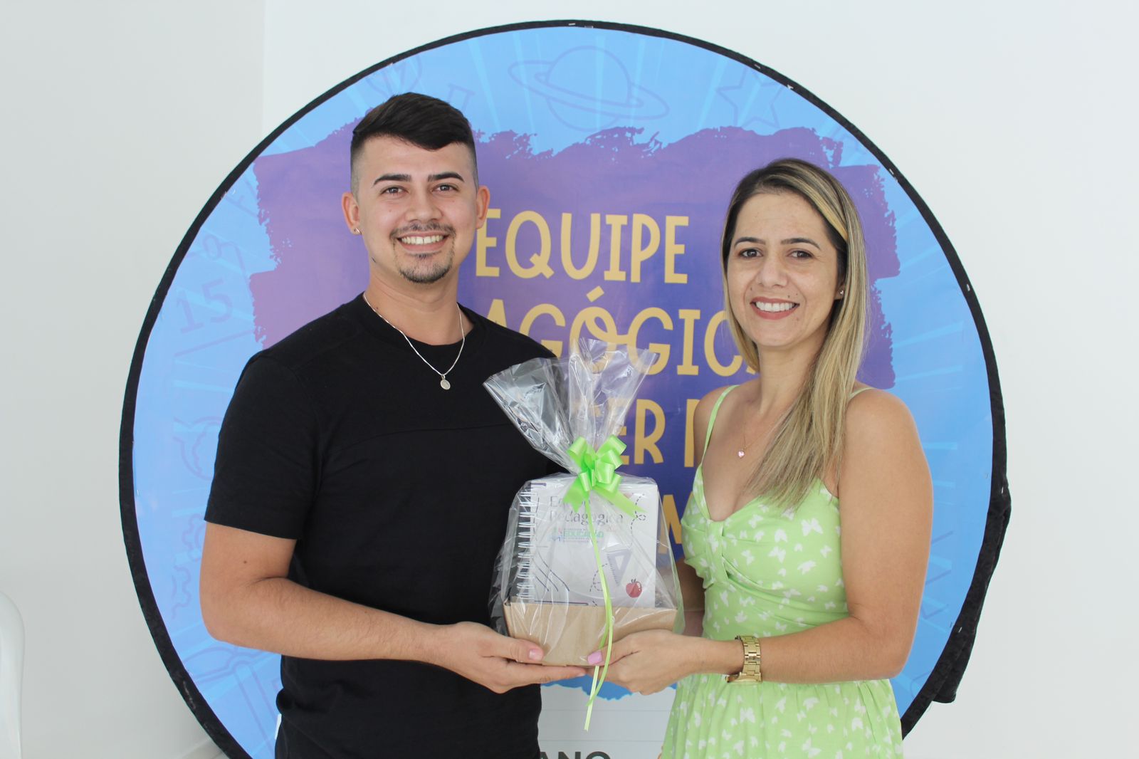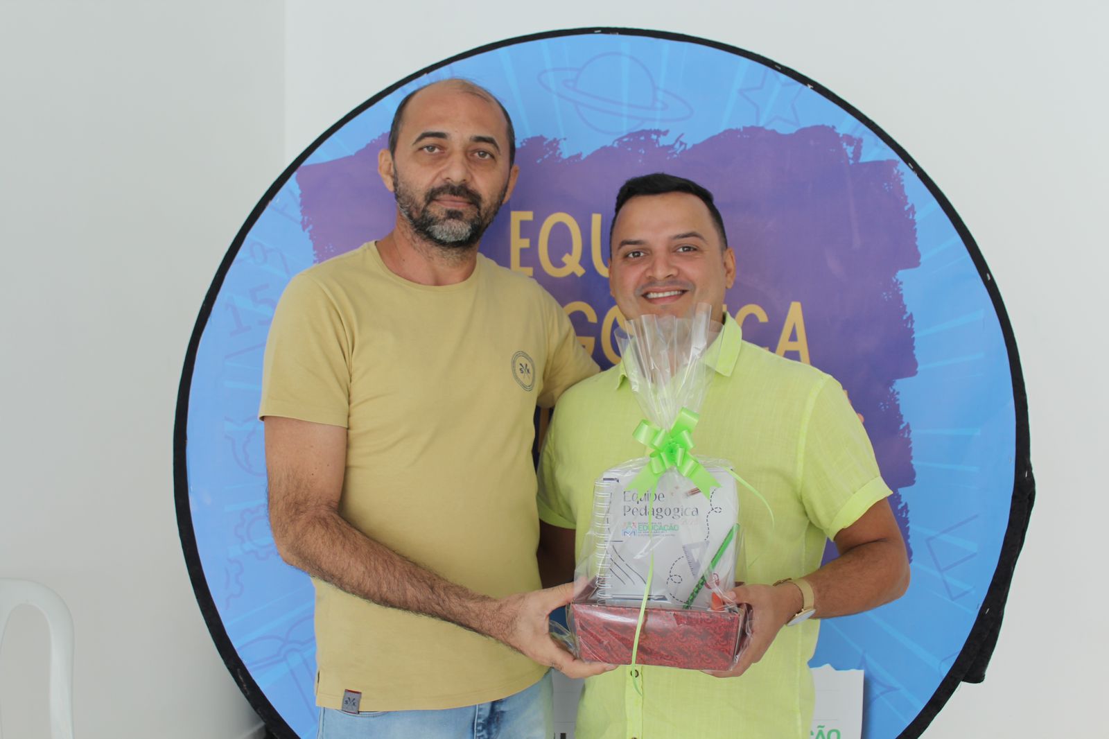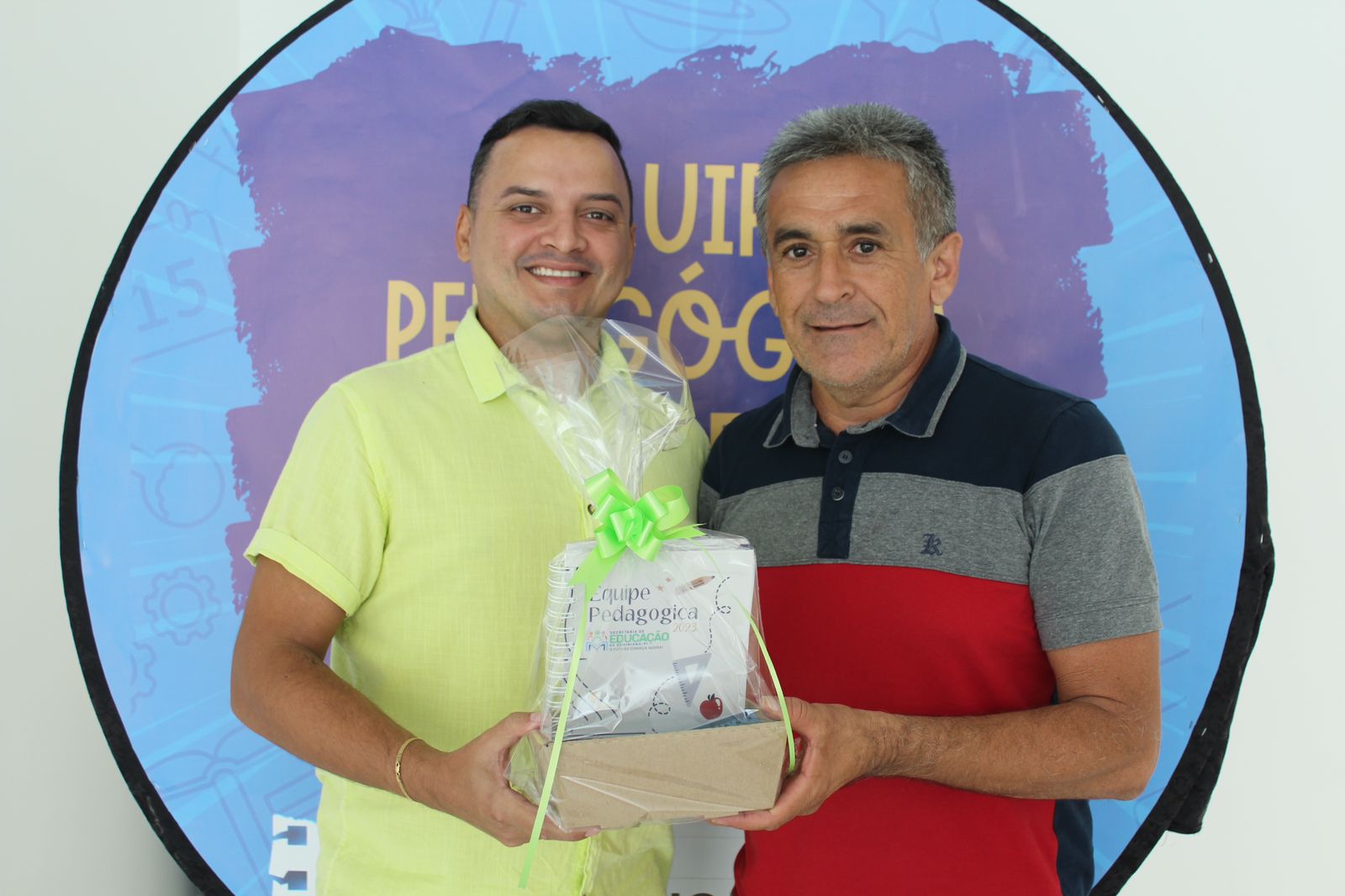 O coordenador-geral da Secretaria Municipal de Educação, Railton Pinheiro, conduziu a reunião, as dinâmicas e apresentou o calendário escolar 2023.