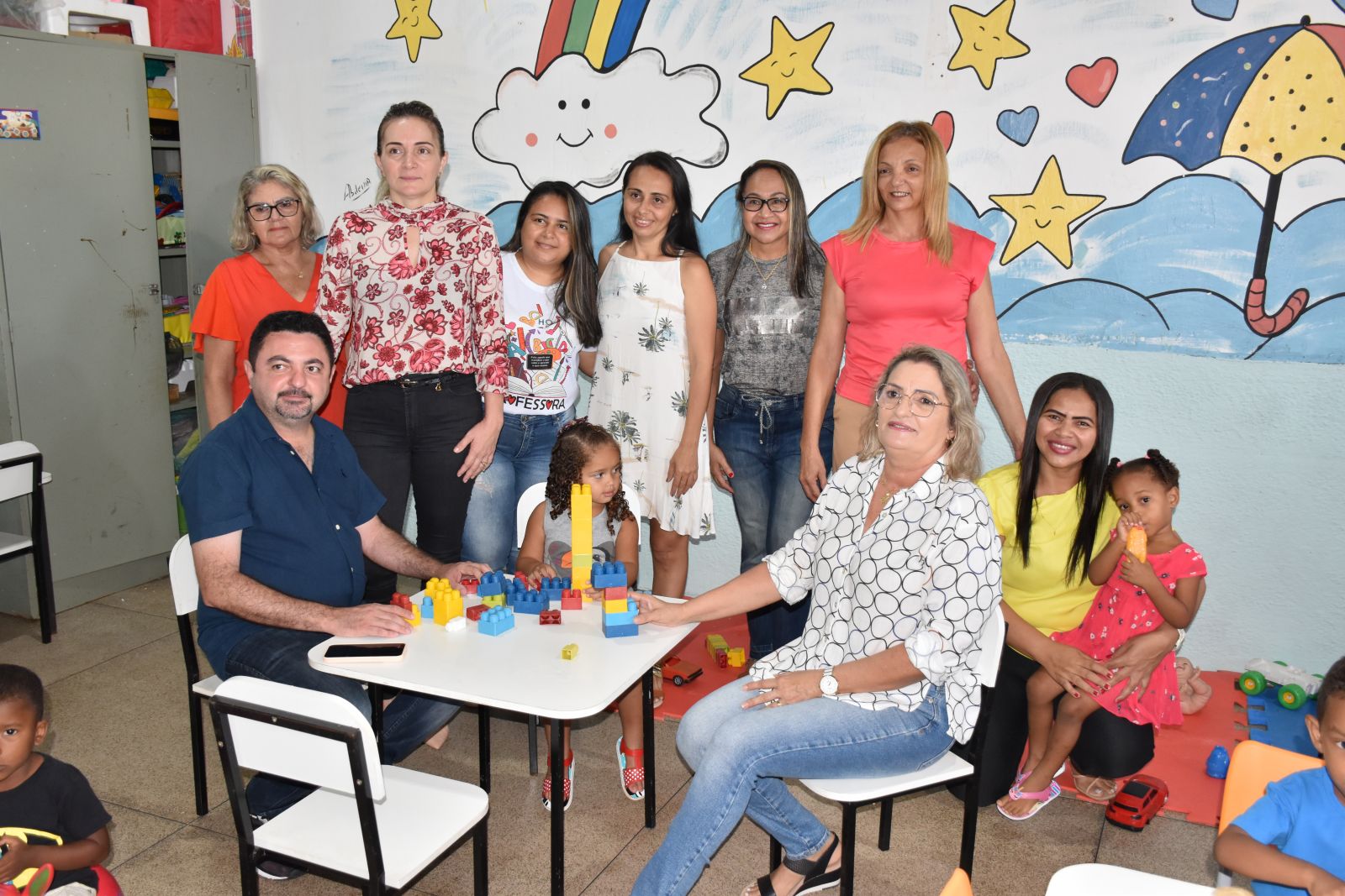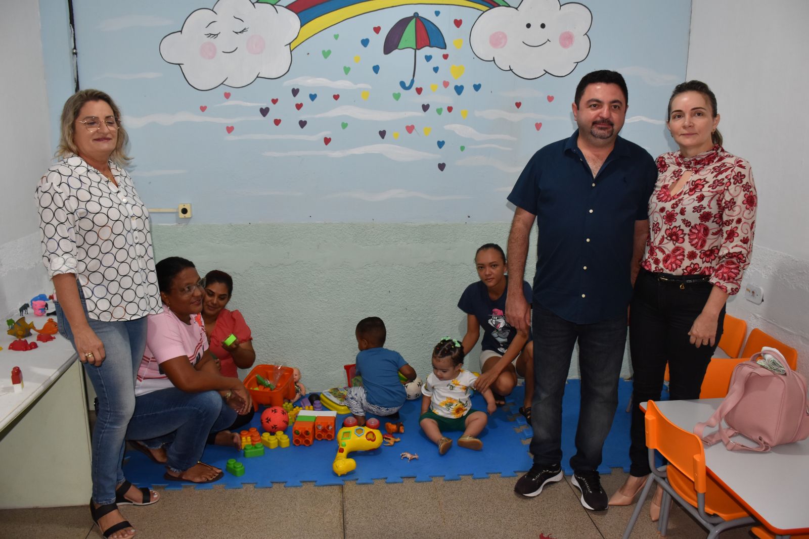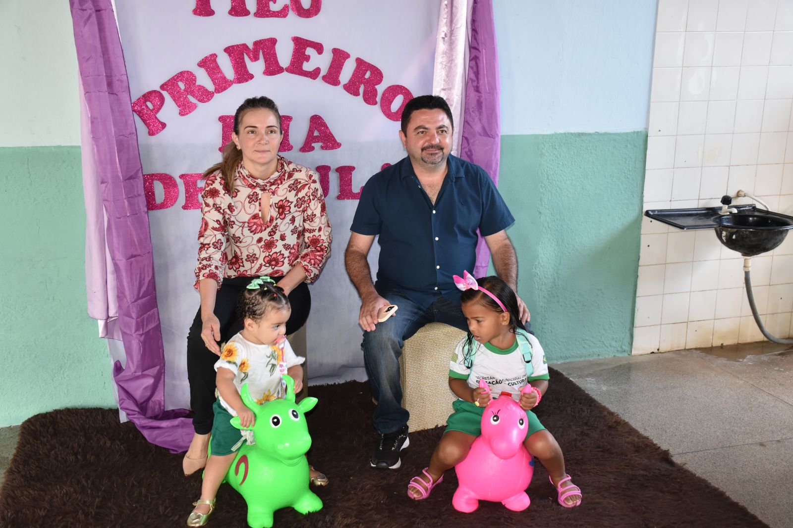 Muitos pequenos tiveram o seu primeiro dia de aula na Creche Catarina, entre eles está a pequena Maria Catarina, de um ano, filha do prefeito Barroso Neto e da vice-prefeita Gláucia Portela.