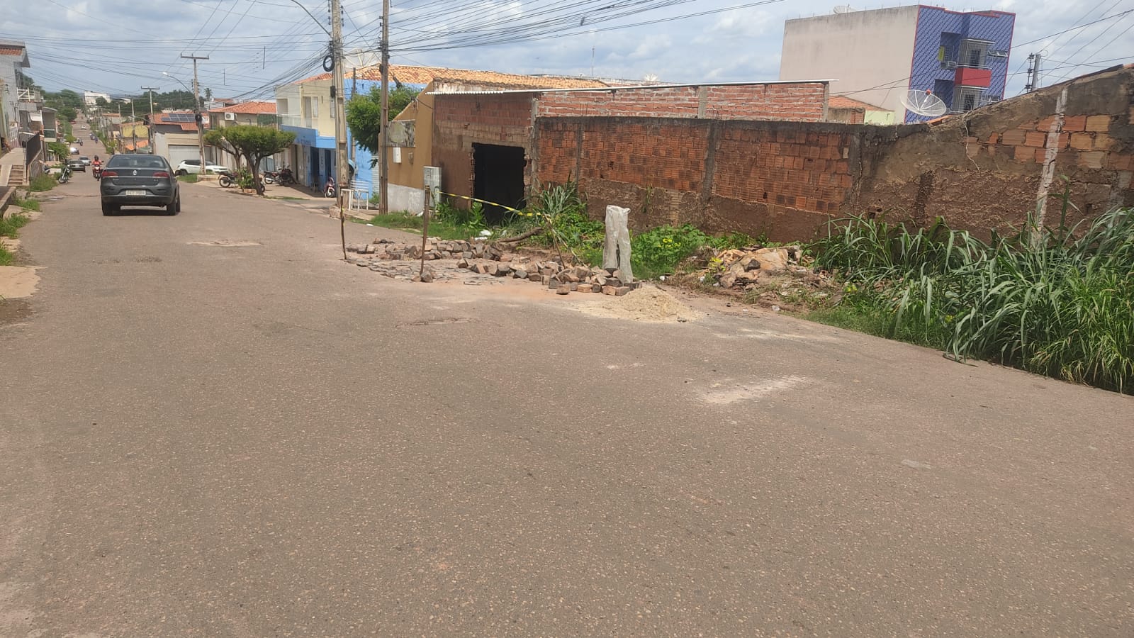 Um reparo inacabado tem causado acidentes na Rua Luís Nunes, no bairro São José, em Picos.