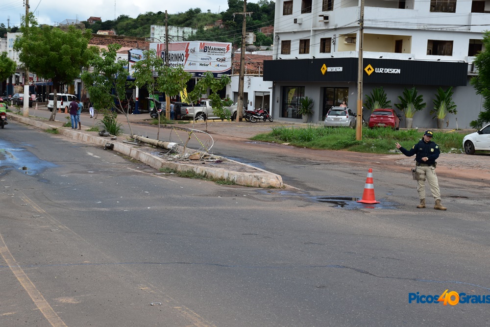 Um acidente ocorreu na madrugada desta sexta-feira (17) na BR-316, no bairro Bomba, em Picos. Um veículo Toyota Corola, de cor preta, colidiu com um poste, derrubando-o e deixando os fios energizados na via. Felizmente, o motorista foi socorrido e encaminhado ao Hospital Regional Justino Luz, onde passará por exames.
