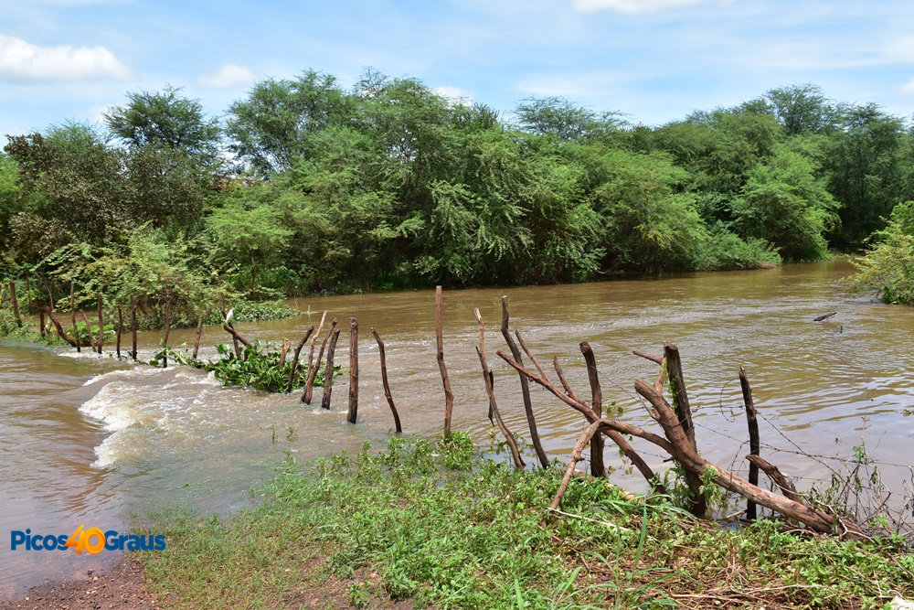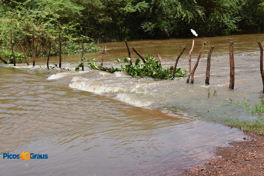 Com as chuvas dos últimos dias, o rio Guaribas, adormecido na maior parte do ano, volta a ganhar força e cobre a passagem. A força da sua correnteza engana motociclistas e motoristas que insistem em atravessar.