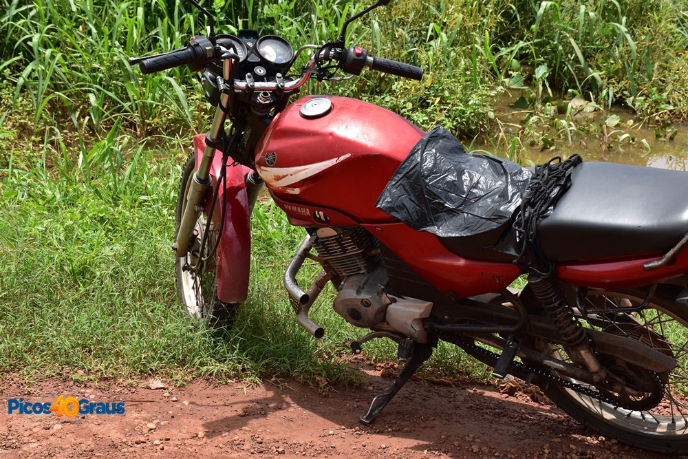 Motocicleta deixada no local, após ser arrastada pela correnteza, na manhã desta sexta-feira.