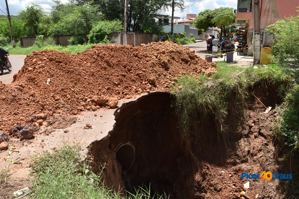 “Esse problema só vai ser resolvido, quando um carro cair aqui dentro. Há dois anos esse buraco abre sempre que chove, mas esse ano o problema tomou proporções maiores”, disse um morador ao Picos 40 Graus.