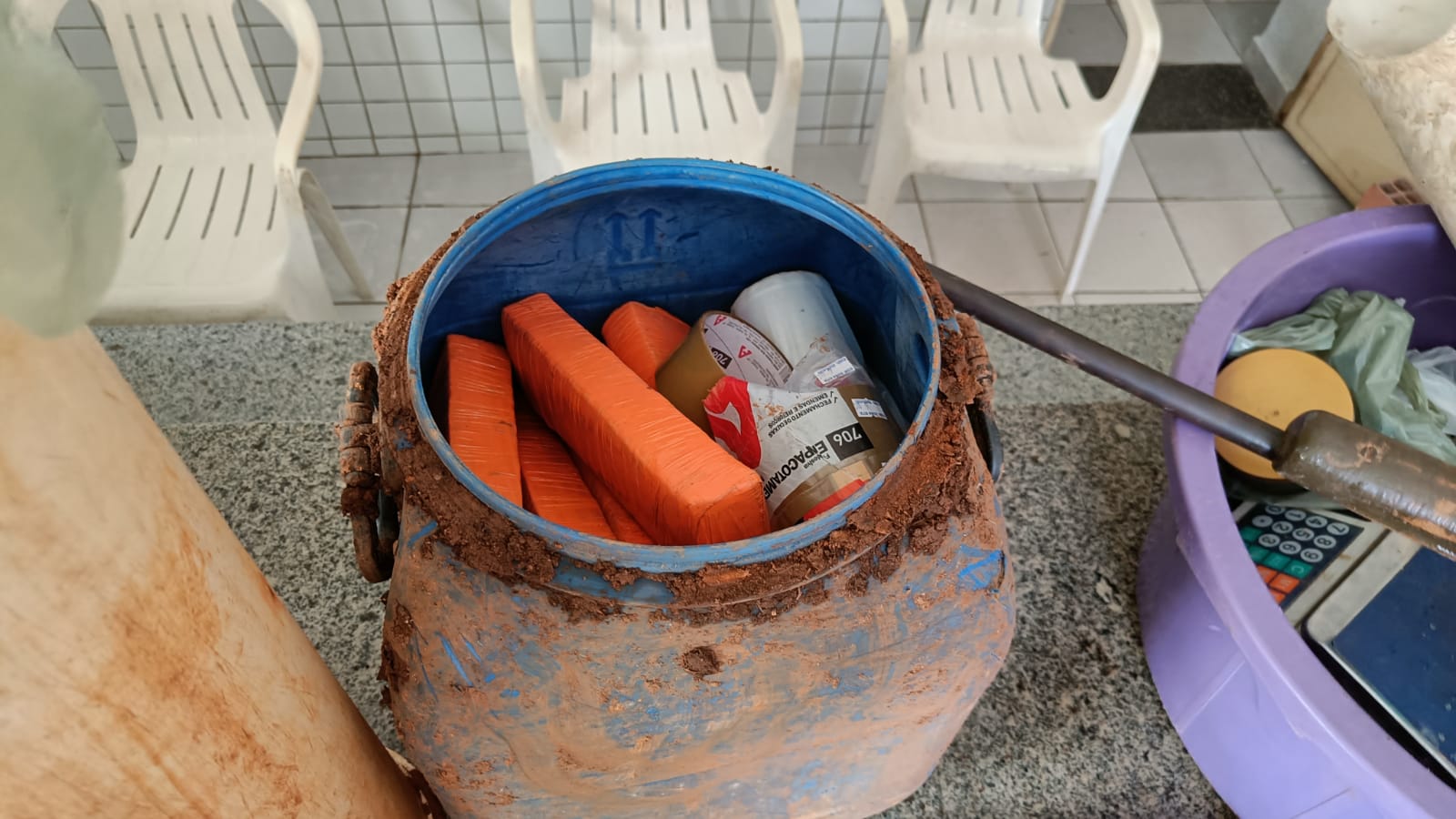 Durante as buscas, com utilização de cães farejadores e escavações, os investigadores localizaram cerca de 11kg de maconha, 874g de cocaína e 494g de crack. Além disso, foi apreendido um revólver calibre 38 de cano longo, uma espingarda calibre 36, trinta munições de calibres 38, 380 e cartuchos de espingarda.