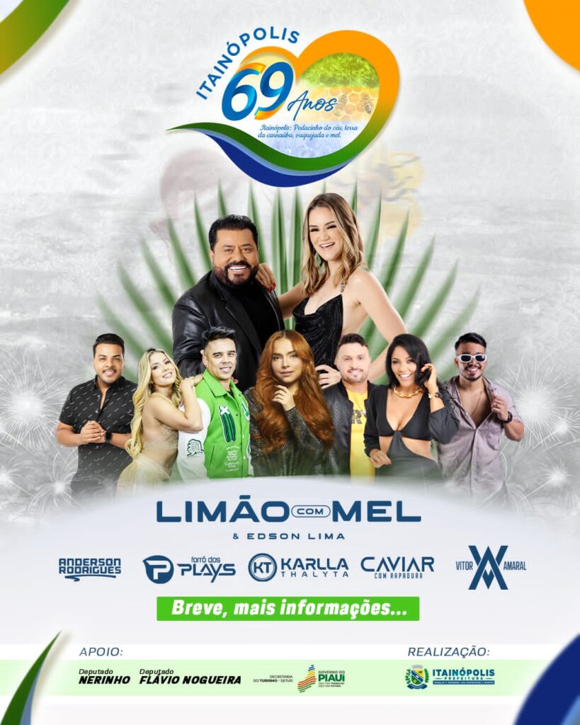 A Prefeitura de Itainópolis, por meio do prefeito Miguel Rodrigues, anunciou neste final de semana a programação completa do aniversário de 69 anos de emancipação política e administrativa do município. As festividades irão ocorrer de 29 de maio a 1º de junho.