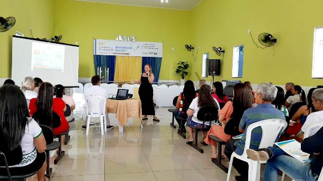A programação da conferência seguiu com a Palestra Magna, proferida pela professora e assistente social, Ângela Bezerra, que explanou sobre o tema do encontro.