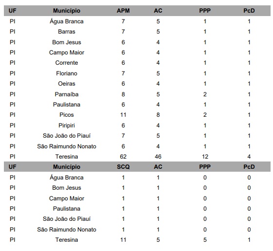 No Piauí, as vagas estão distribuídas em 14 municípios: