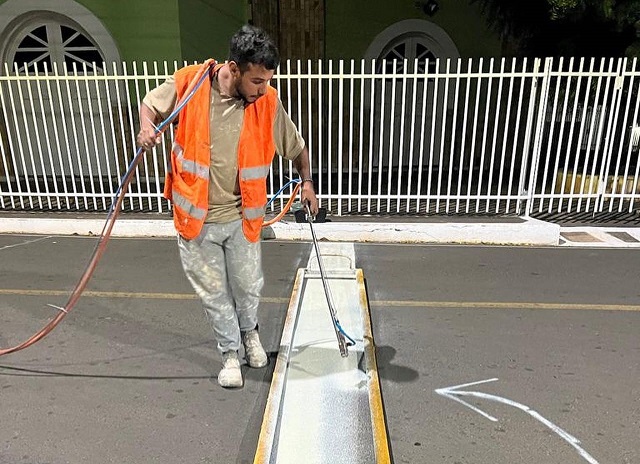 “Os trabalhos não param, durante o período noturno, estamos fazendo a sinalização horizontal da nossa cidade deixando a mesma mais segura”, destacou o gestor.