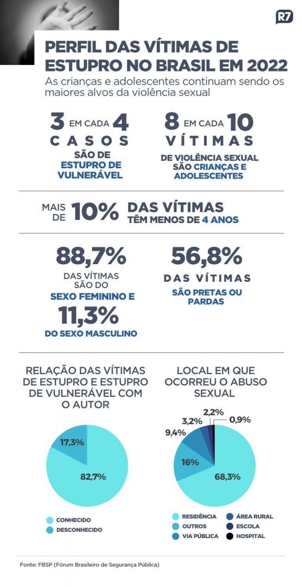 Os crimes de estupro e estupro de vulnerável bateram recorde histórico de registros em 2022, de acordo com dados inéditos divulgados nesta quinta-feira (20) pelo Anuário Brasileiro de Segurança Pública.