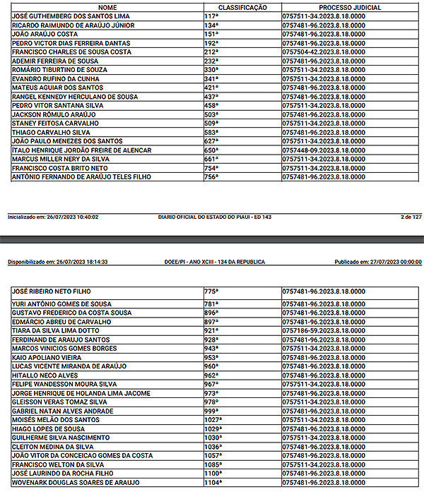 O governador Rafael Fonteles (PT) assinou a nomeação de mais 41 novos policiais militares para o cargo de Soldado. A nomeação foi publicada no Diário Oficial do Piauí, de 27 de julho.