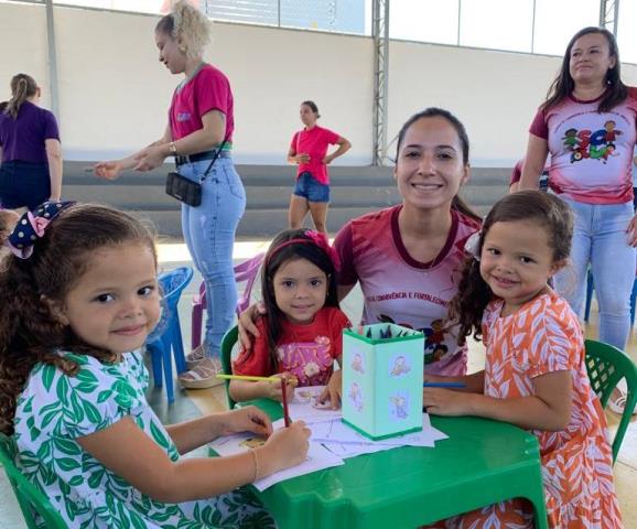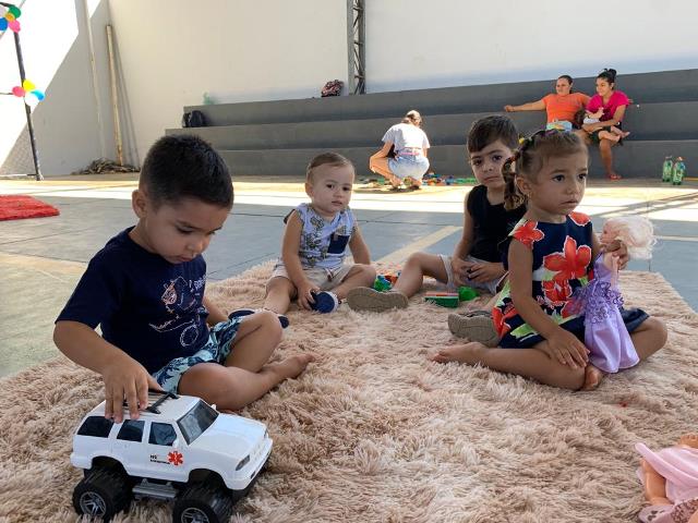 As crianças dos Programas Criança Feliz e Infância Feliz também tiveram momentos de lazer durante as férias. No dia 1º de agosto, na Quadra Poliesportiva Chiquinho Borges, foi promovida diversas atividades recreativas com a participação das crianças e mães.