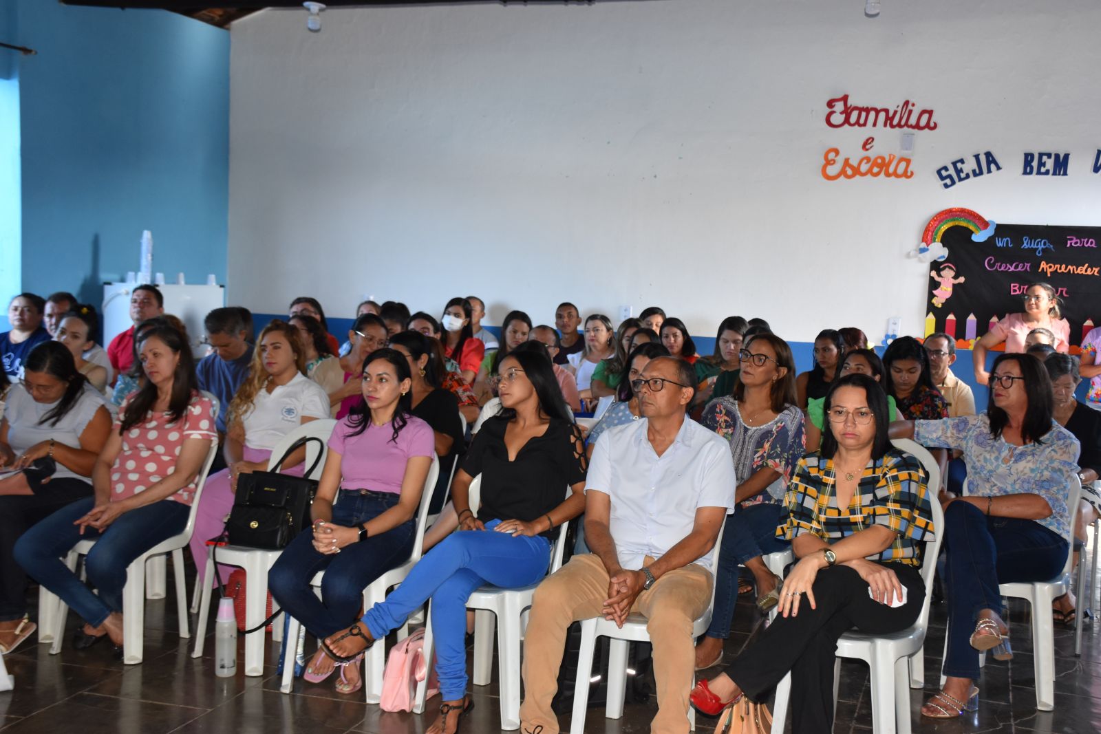 A abertura do evento foi marcada pela acolhida, seguida pelas boas-vindas da Secretária de Educação, Maria Inês que destacou a importância do ano letivo atual, que inclui a prova SAEB, e mencionou propostas para a melhoria dos resultados educacionais.