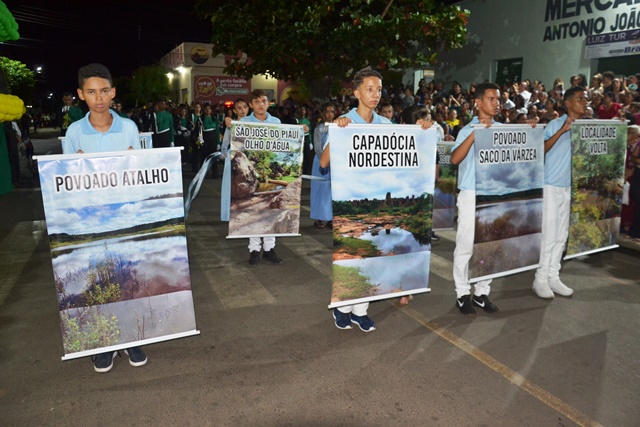 Em seguida, a Rede Estadual de Ensino do Município de São José do Piauí, representada pela Supervisora de Ensino, Maria Leila de Lima Santos, se apresentou na Avenida com alunos das Unidades Escolares: João José de Alencar e Helvídio Nunes.