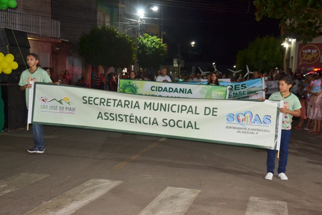 A programação teve continuidade com o desfile de representantes da Secretaria de Meio Ambiente, que trouxe como destaque a conquista do Selo Ambiental, onde o município de São José do Piauí foi certificado com “Selo A” pela primeira vez na classificação do ICMS ecológico, comprovando assim, o desempenho da atual gestão com o Meio Ambiente.