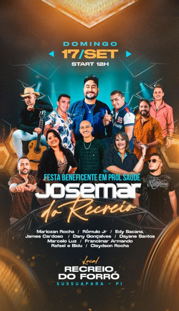 Vários cantores da grande região de Picos estão promovendo neste domingo, dia 17, um grande show beneficente no Recreio do Forró, em Sussuapara, com o objetivo de angariar recursos para ajudar no custeio do tratamento de saúde do promotor de eventos Josemar Matias dos Santos, 69 anos, que é o proprietário daquele espaço de eventos.