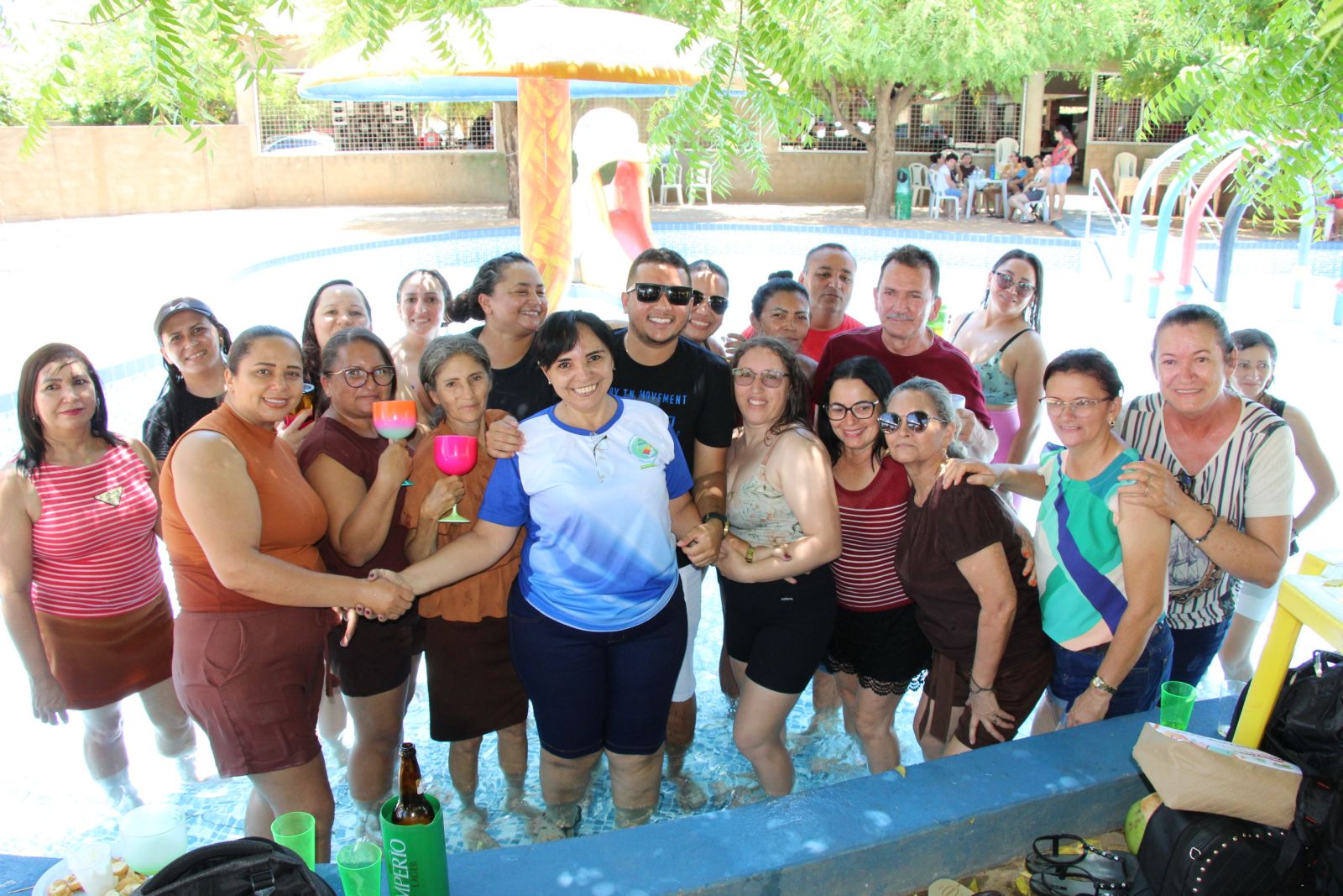 Café da manhã, banho de piscina, almoço, presentes, sorteio de brindes, bingo e bebidas em geral foram ofertados na confraternização entre os profissionais. O evento foi aberto com momento de oração conduzido pelo professor Victor Leal. Na ocasião foi ministrada uma dinâmica pela professora de Educação Física, Dayana Moura, que levou os participantes a praticarem alguns exercício físicos.