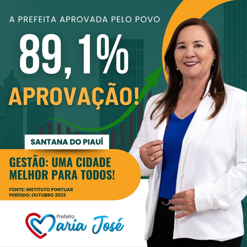 A prefeita do município de Santana do Piauí, Maria José, obteve a impressionante aprovação de 89.1% dos santanenses ao ser avaliada no que diz respeito a sua gestão.