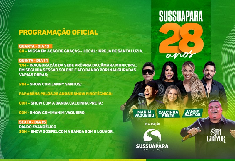 “Ao longo dos últimos anos, testemunhamos juntos o crescimento e a transformação de nosso município. Cada povoado, cada localidade, cada canto carrega consigo as histórias e as vivências de uma comunidade unida e solidária. Sussuapara é feita de pessoas, de sonhos compartilhados e de esforços coletivos para construirmos um lugar melhor para todos”, frisou.