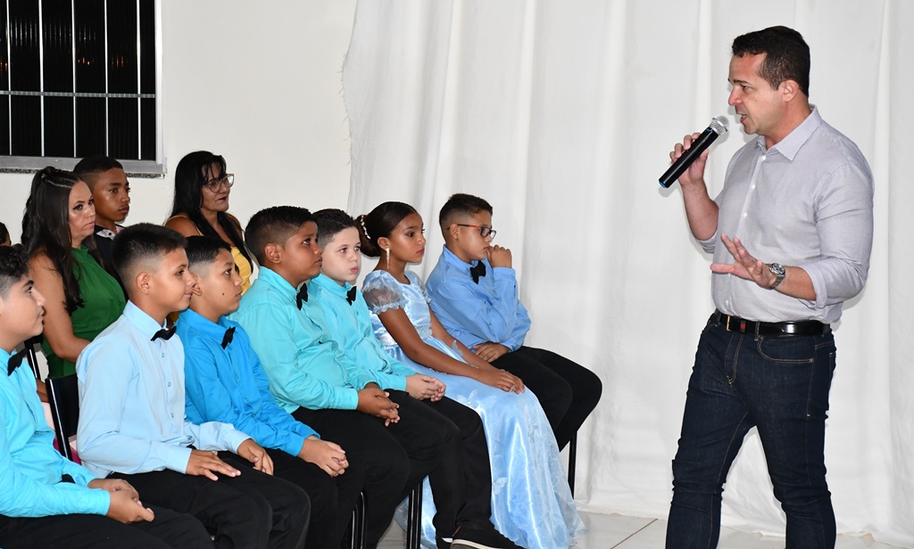 Ao se dirigir aos formandos e seus familiares, o prefeito Naerton Moura falou da importância da parceria entre família, escola e poder público, deixando a eles uma mensagem clara: investir na educação é investir no futuro promissor de uma sociedade.