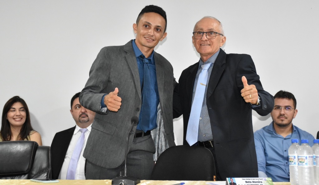 Em sessão solene realizada no início da noite desta sexta-feira, dia 29, o vereador José Luiz de Azevedo Neto, mais conhecido como Neto Moreira (PTB), assumiu a Presidência da Câmara Municipal de Santa Cruz do Piauí, em substituição ao vereador Jamilson Marta do Nascimento (PTB), que renunciou ao cargo por motivos particulares e com isso o vereador Neto Moreira segue no comando do Legislativo até o final da atual Legislatura.