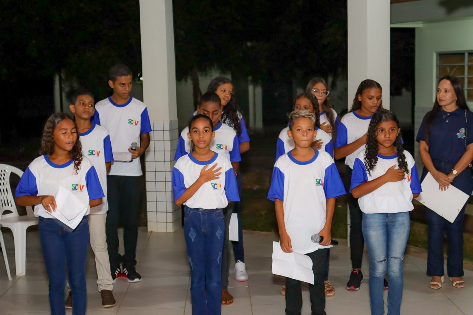 O evento teve início com a formação da mesa de honra e a apresentação do hino oficial de Aroeiras do Itaim realizada por adolescentes do Serviço de Convivência de Fortalecimento de Vínculos (SCFV) da Assistência Social do Município.