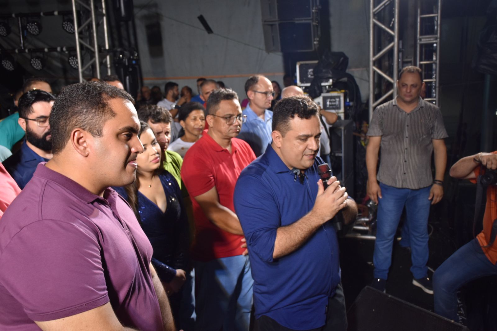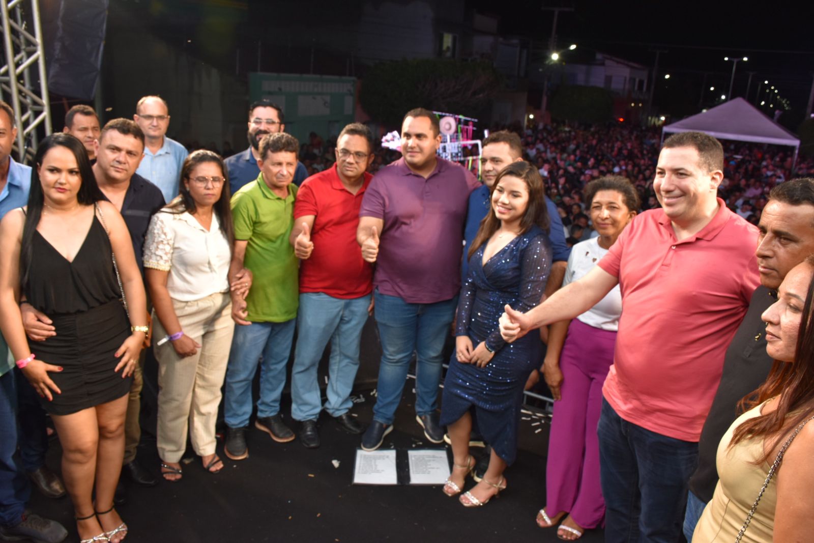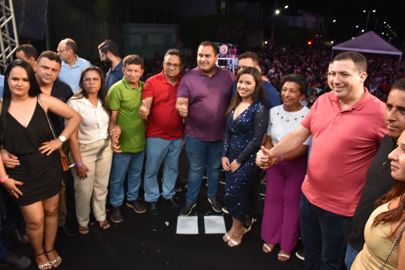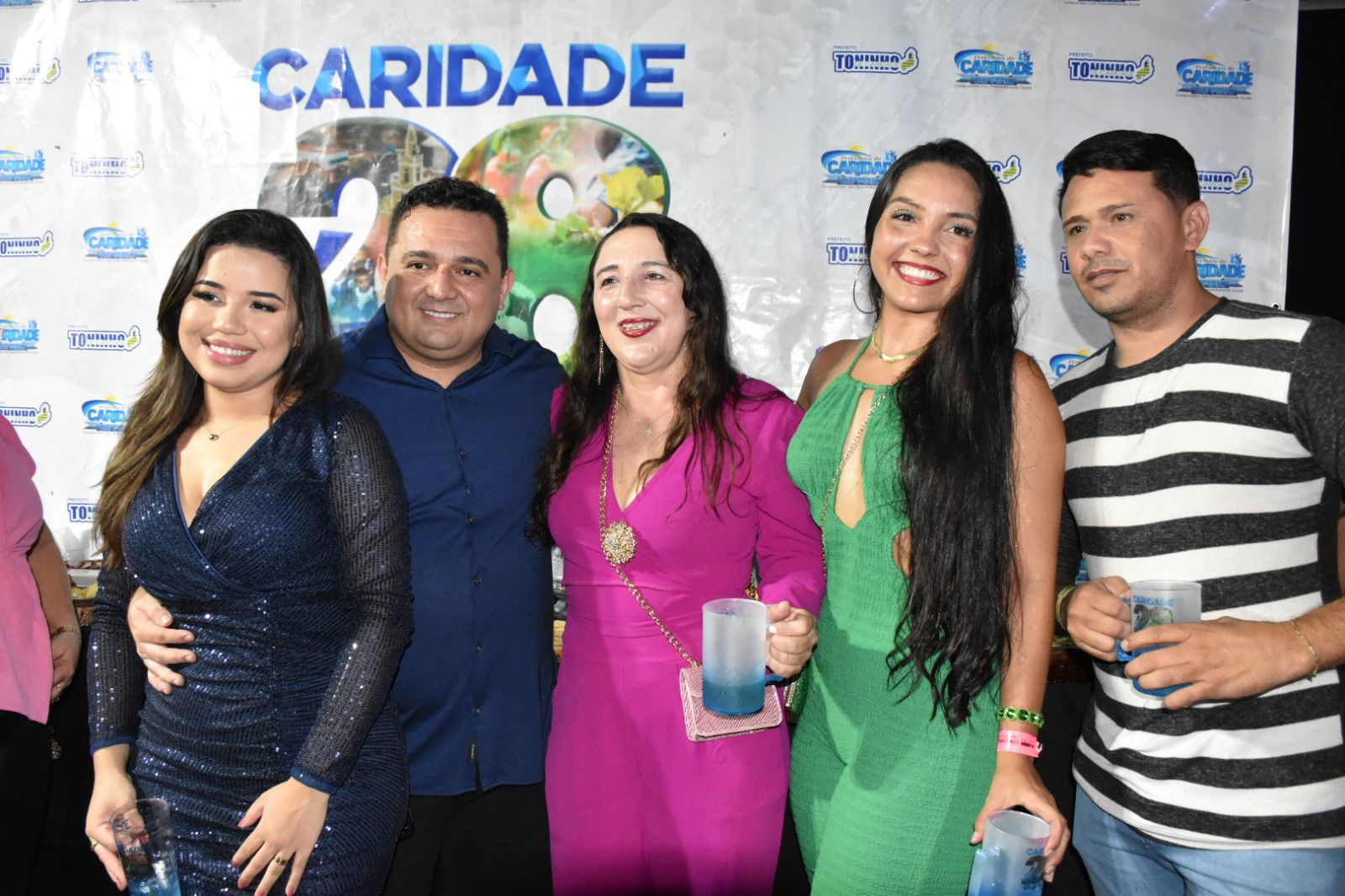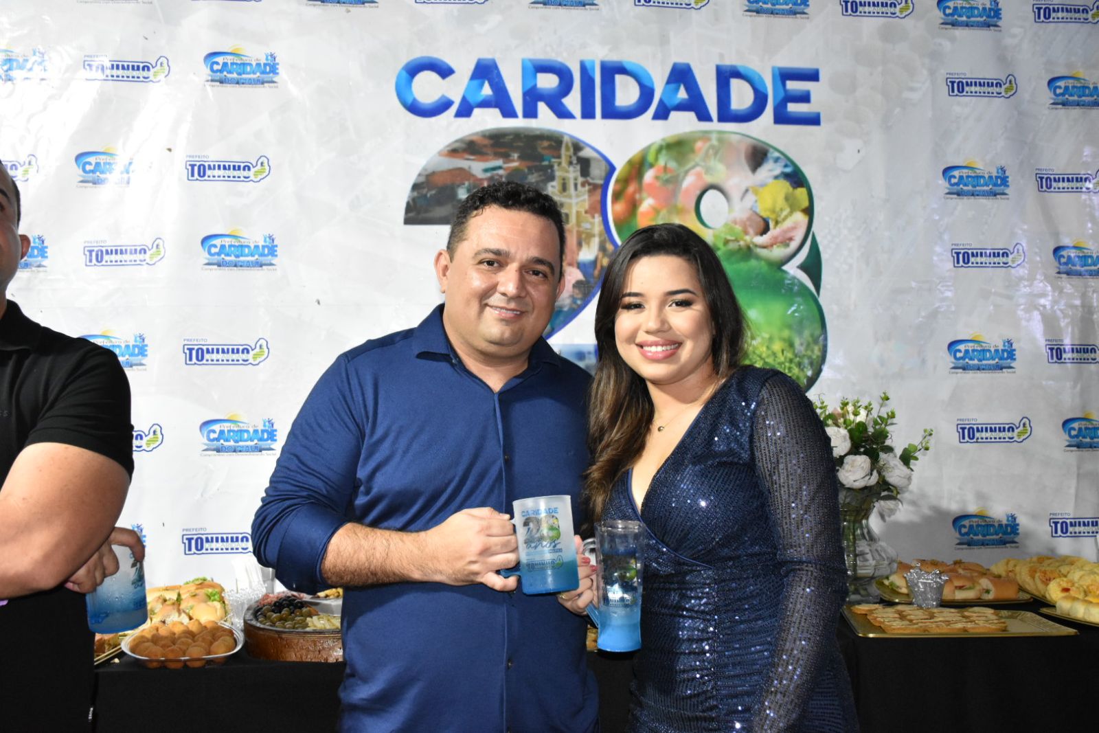 No início da madrugada desta sexta, 26, data oficial do aniversário do município, o prefeito Toninho de Caridade subiu ao palco acompanhado da primeira-dama Samires Silva, do vice-prefeito Miguel Sousa (Nalvin), do deputado estadual Georgiano Neto, do coordenador do DNOCS, Assis Rocha, e de prefeitos de várias cidades da região, para parabenizar Caridade pelos seus 28 anos.