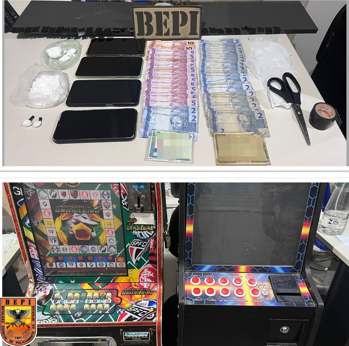A Polícia Militar do Piauí, através da 3ª Companhia do Batalhão Especial de Policiamento do Interior – BEPI, prendeu dois indivíduos por tráfico de drogas e por promoverem jogos de azar em um bar na cidade de Picos. No ato da abordagem, drogas, dinheiro em espécie, máquinas caça-níqueis e celulares foram apreendidos. A captura da dupla ocorreu após a guarnição ser informada por populares que no citado estabelecimento sempre ocorria uma movimentação atípica.